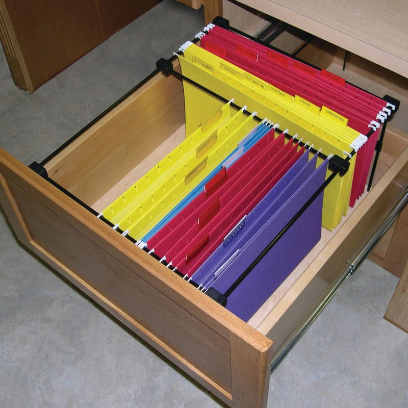 - Use T-Rod to divide drawer in sections to hold legal and letter