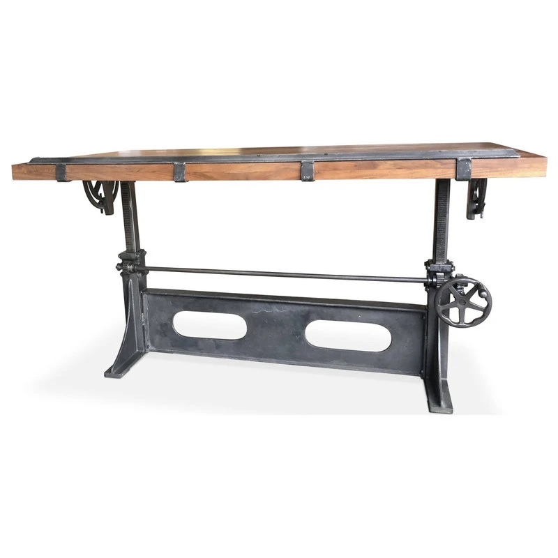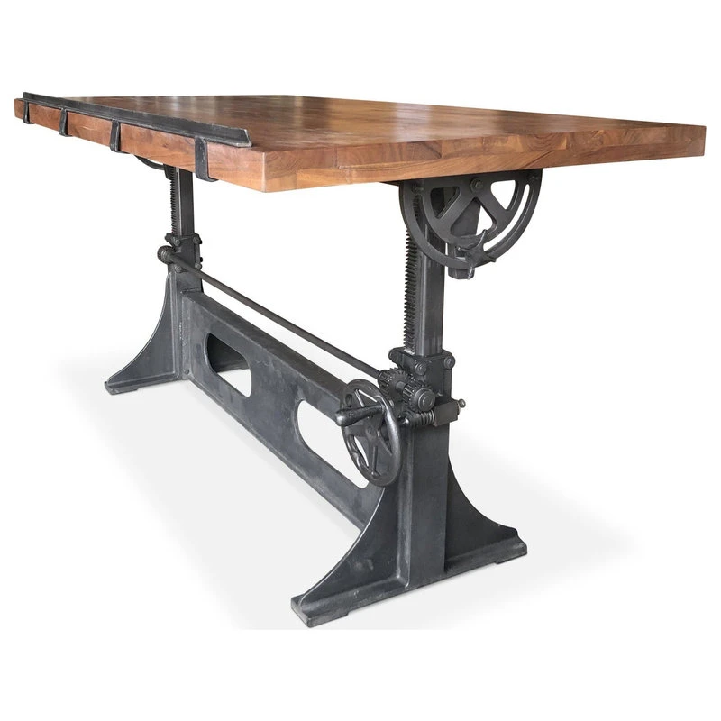 Adjustable height coupled with the full-tilt top and removable iron lip, allow this desk to be conveniently converted for dining or counter-height entertaining. You will have no problem finding a position to maximize efficiency and comfort, whether seated or standing. The solid Acacia top has a smooth-sealed Provincial finish.