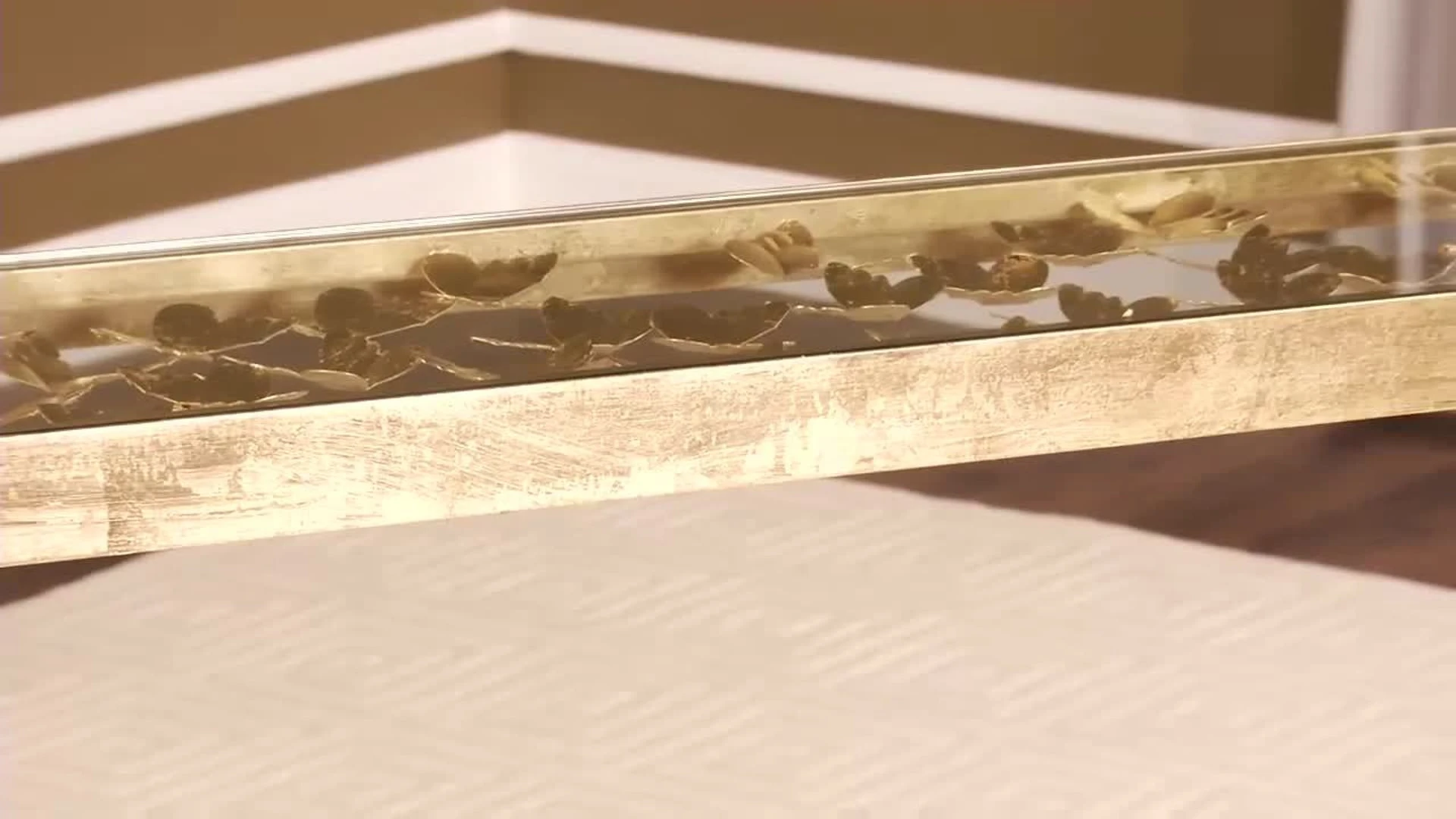 This butterfly desk was inspired by a handcrafted piece created by master goldsmiths for an Italian princess. Tuscan estate. Ethereal and timeless, this modern heirloom’s antique gold finish and sculptural detail bring visual splendor to any decor.