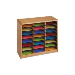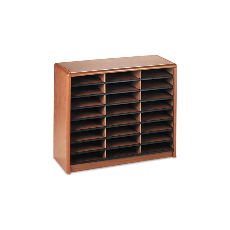 This simple yet effective organizing tool has so many uses: a mailbox, material holder, stationery sorter, craft or office supply storage. Steel shell and support shelves add stability and durability. Letter size, 9 3/4w x 12 1/2d x 2 1/2h compartments are made from heavy-duty corrugated fiberboard. Wide shelf front serves as label area (labels included). Easy assembly with quick-locking fasteners. Over-sized compartments hold up 550 sheets of paper.