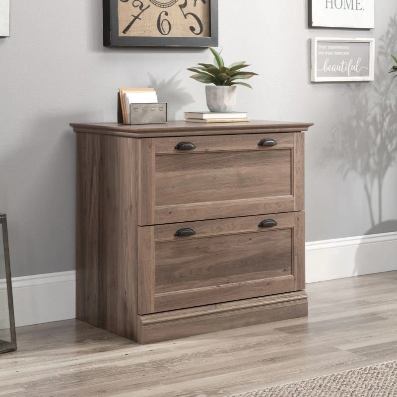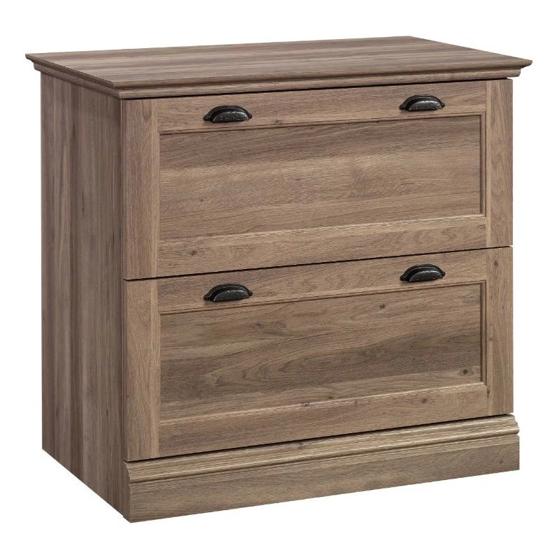 Bring simple rustic charm to any room in your home with this lateral file from the Barrister Lane® collection. The top surface of this legal-size filing cabinet is large enough for a lamp, your pile of mail, sticky notes, and your cup of coffee. The drawers of this 2-drawer lateral file cabinet use full extension slides for smooth ease of use. Both drawers on this lateral filing cabinet hold your important letter or legal-size hanging files. An interlocking safety mechanism only allows one drawer to open at a time, keeping you and your family safe. This 2-drawer filing cabinet features a quick and easy assembly process with a T-lock drawer system, so you can start organizing your files as soon as possible. The timeless Salt Oak® finish makes this wood lateral file cabinet a stylish addition to your home office, spare room, living room, or wherever you need more file storage space.