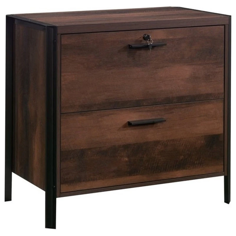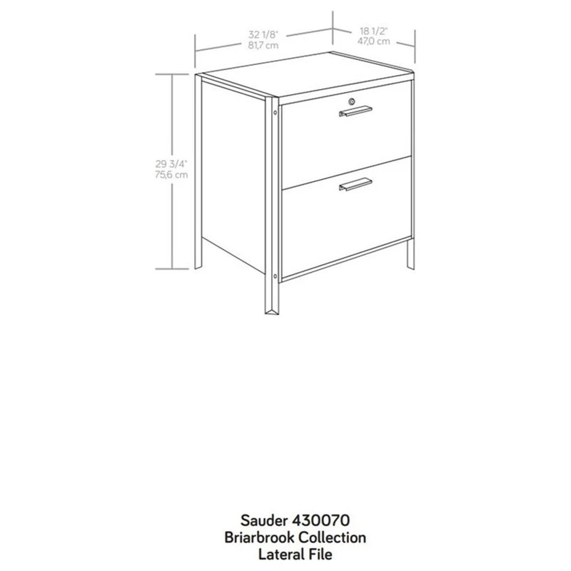 This lateral file from the Briarbrook collection gives storage and style where you need it most. Whether at home or at work, this lateral file cabinet will hold your important letter or legal-size hanging files with smooth, full extension slides. An interlocking safety mechanism allows only one drawer of this lateral file to open at a time, ensuring your safety and ease of use. For added protection of your files, this 2-drawer filing cabinet features a locking upper drawer to keep your files secure while you are away from the office or at work. This file cabinet is finished on all sides for versatile placement—it will look polished from all angles, anywhere in your home or office. A powder coated metal frame enhances the durability and sleek feel of this lateral file cabinet. Finished in a Barrel Oak finish, this file storage furniture is a bold, but needed, upgrade to your workspace.
