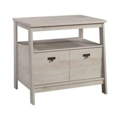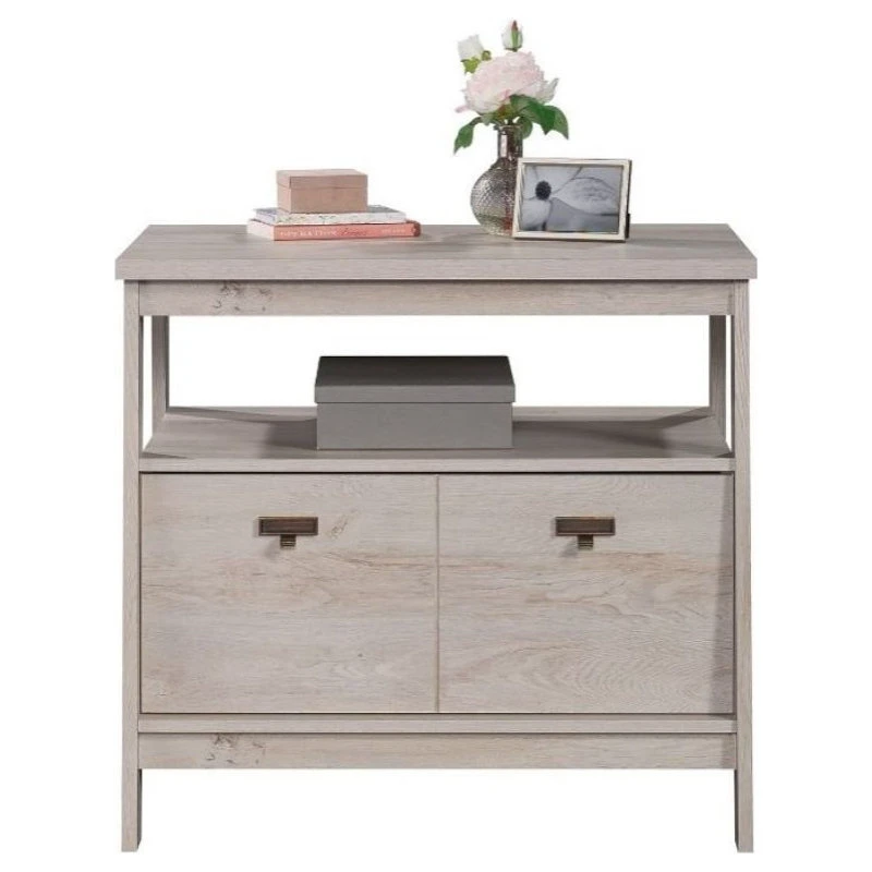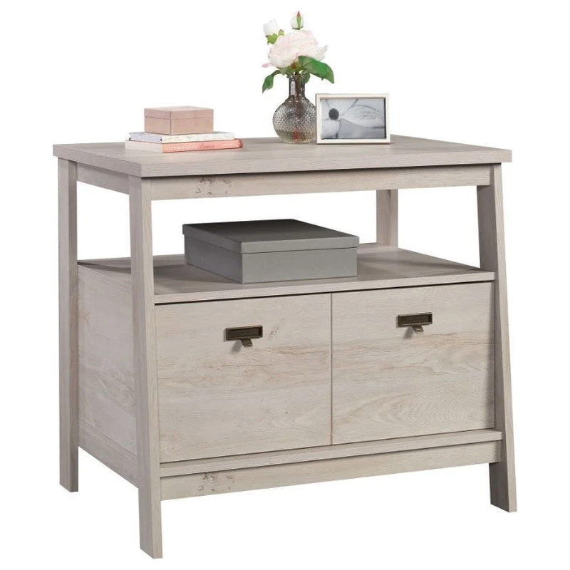 For a stylish 1 drawer lateral file that complements the furniture you already own, look no further than this file cabinet from the Trestle® collection. This lateral filing cabinet features a drawer with full extension slides that holds letter or legal-size hanging files. An open shelf is a convenient feature of this 1 drawer file cabinet, as it allows additional space for your planner, books, organizing bin, and décor. The top surface is spacious enough for a lamp, your pile of mail, photos of your family, and more. Finished on all sides for versatile placement, this open shelf filing cabinet will look polished from all angles. With a T-lock drawer system, assembly is quick and easy—allowing you to store in style quicker than ever. Finished in a light Chalked Chestnut®, add storage where you need it and style as a bonus with this wood lateral file cabinet.