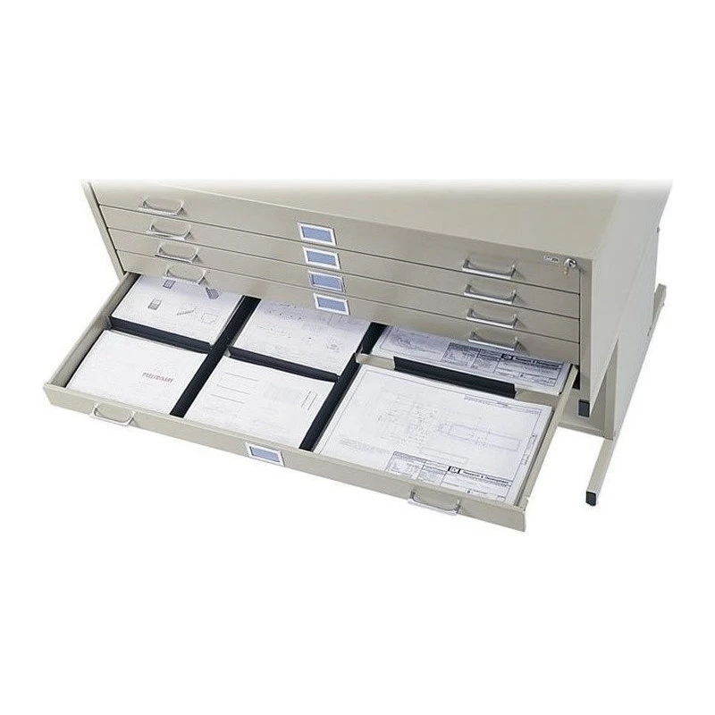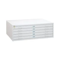 This 5-Drawer Flat File Cabinet is all business and is a space-saving means of office filing all 36 x 48″ documents. This cabinet’s files are modular, so they can be used individually or in a space-saving stack, and case-hardened ball-bearing rollers provide you with smooth, quiet operation. Positive closures keep your drawers tightly shut, while courtesy stops keep them in place while open. Keep contents clean with a rear hood and hinged front depressor.