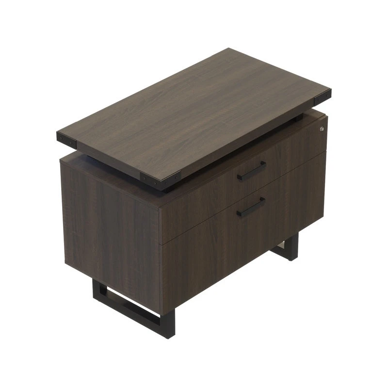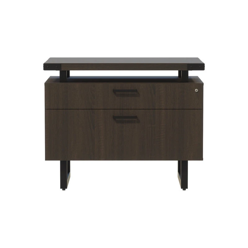 Scranton & Co Lateral File features a contemporary design that provides a residential look, complemented with Brushed-Silver or Black Powder Coat accents and finishes. Comes complete with one file drawer and one storage drawer.