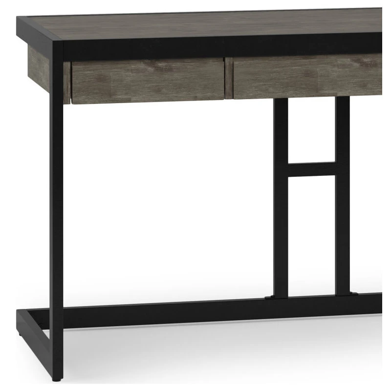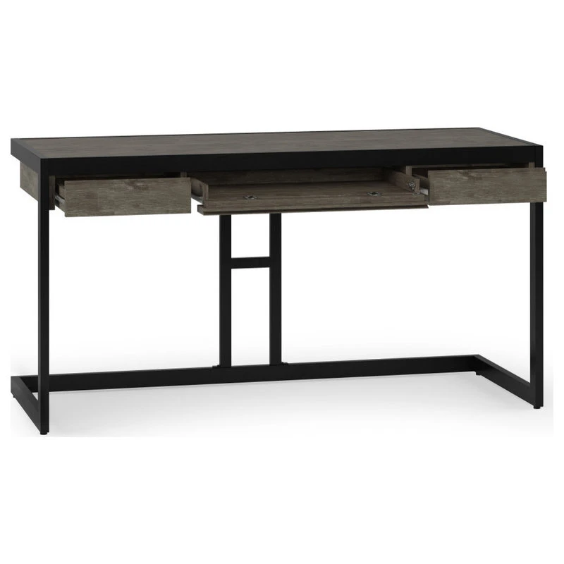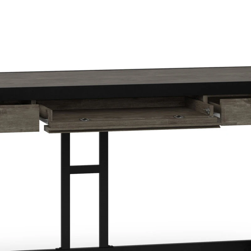 Work in style with the Erina Desk. Combining industrial style and function this desk is crafted of solid Acacia with solid metal legs and frame. Generous in size, this desk offers a spacious top surface and includes a keyboard tray for added convenience. Two side drawers provide plenty of space for small office supplies.