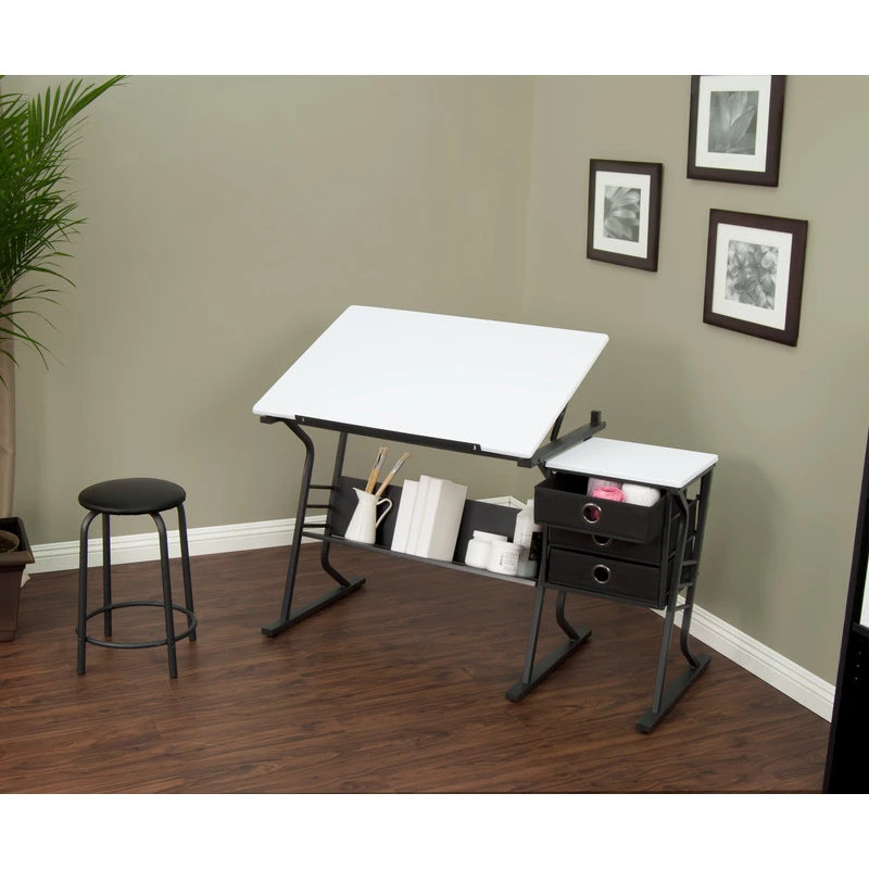 SKU: 13364 Category: Drafting Tables Tags: Art furniture, Art studio furniture, Artist desk, Arts & Crafts, Arts and crafts desk, Arts and crafts office, Arts and Crafts Room, Arts and crafts table, Contemporary drafting table, Craft table, Crafts table, Drawing table, Hobby table, Scrapbook table, Sketching table, Studio art table, Studio desk, Tilted desk