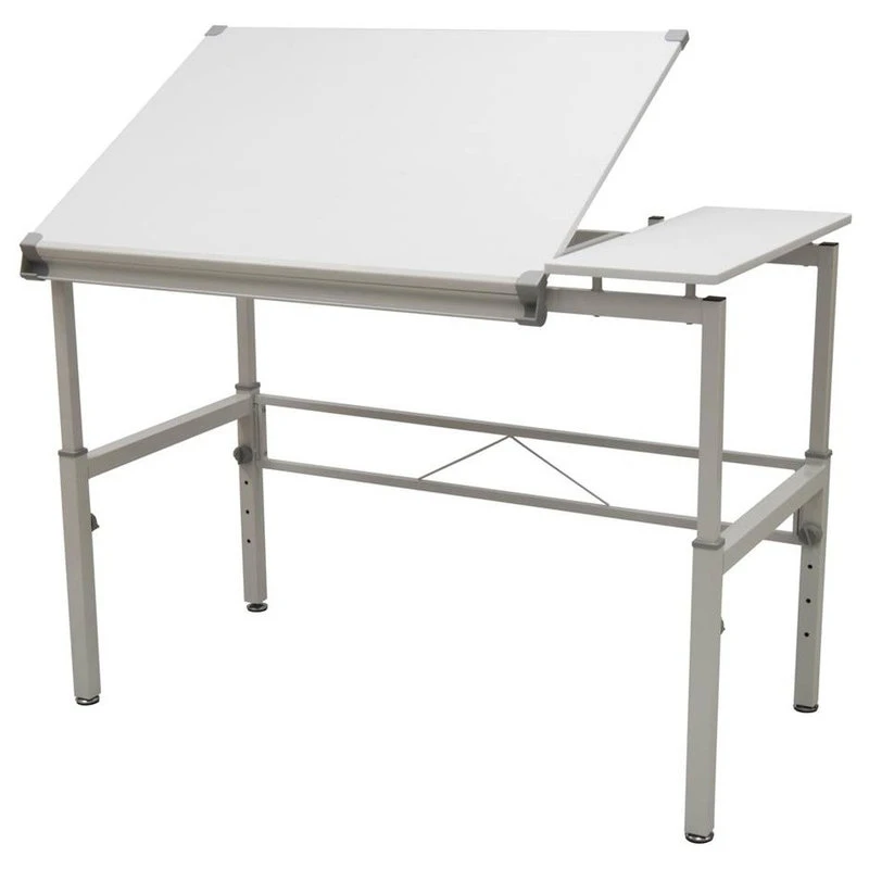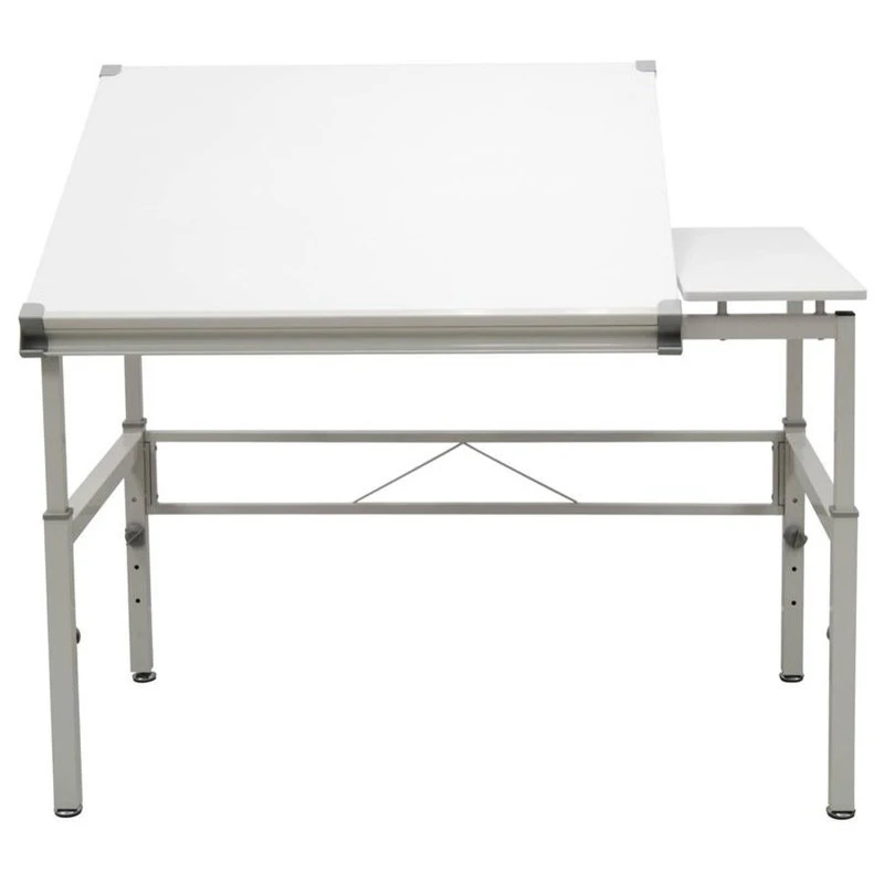 Graphix II Workstation by Studio Designs is built for multitasking. The dual top surface creates space for multiple projects at once. The durable, heavy gage steel construction is built to last. Adjust the height of the table up to 39″ to fit your needs. The workstation features an angled top, flat top and pencil ledge.