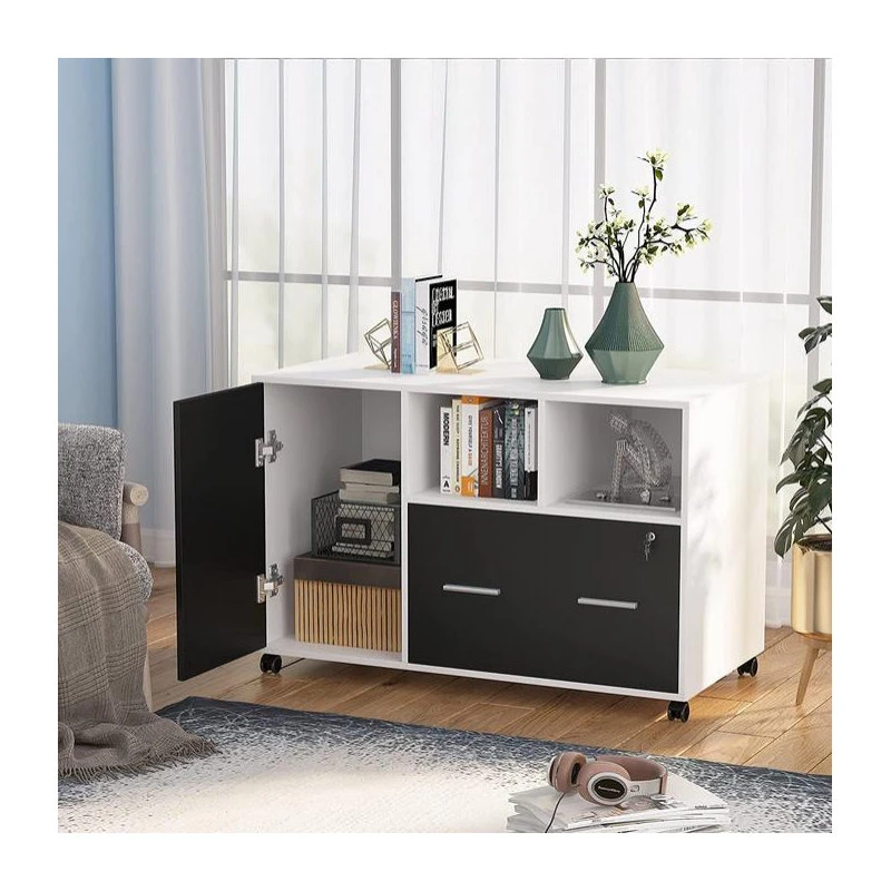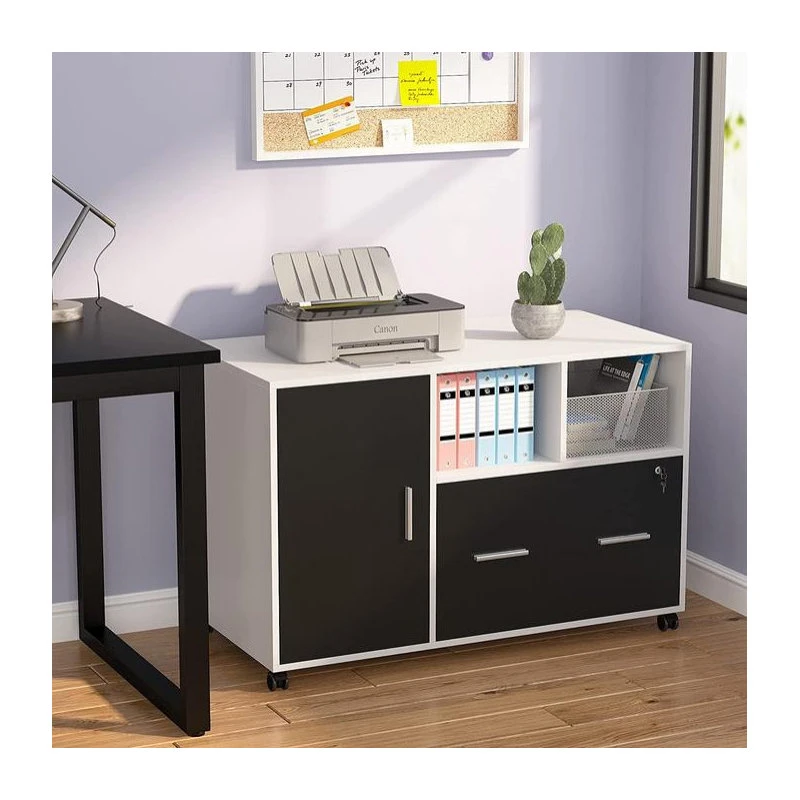 Stylish And PracticalThe Printer Cabinet feature A mix of white and black, that matches well for home and office and adds a retro style to your room. You can put it beside or under the desk, keep the office machines, paper, files and supplies organized.