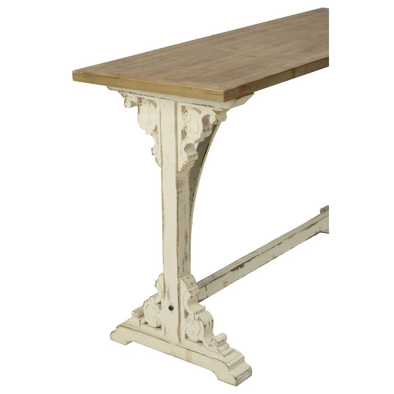 This French Country Style Console Table naturally adds style to any store, event or home. The piece features a natural wood top and weathered cream finish base creating a simple yet elegant piece. This table is a great fixture for stores and or events. Assembly instructions and hardware is included and can be accomplished by one person, but is easiest with two. Every piece screws into place using an Allen wrench.