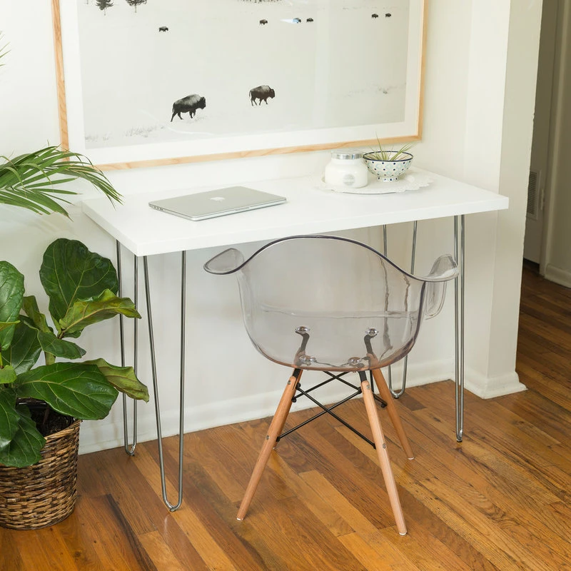 Elegant in design, conservative in space, this hairpin leg wood writing desk is perfect for any room in need of extra work space. The simple white top made of high-grade MDF, along with the sturdy chrome steel legs allows creativity when mixing and matching decor for your home. Place in your home office or in your bedroom for both style and function. The minimalist design of this computer desk makes it easy for you to fit it into smaller spaces, while also giving you the perfect amount of table space needed for all your work.