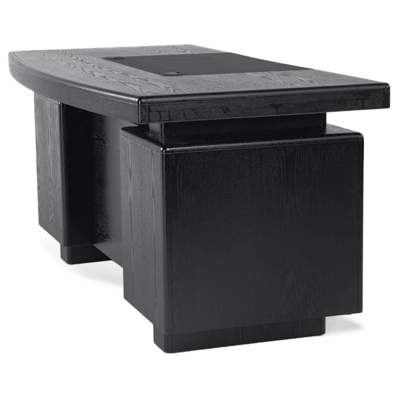 The Monroe desk boasts an array of storage space making it a compact yet functional dream desk. It is crafted from a rich black stained American oak wood veneer with an open grain finish. Features include two locking drawers, one of which accommodates letter and legal filing. There is also a large pencil drawer, faux leather desktop writing pad, wire management portholes, and a hidden CPU tower storage compartment. With all of its’ functional and aesthetic qualities, the Monroe desk is a perfect statement piece for a sleek, modern working environment.