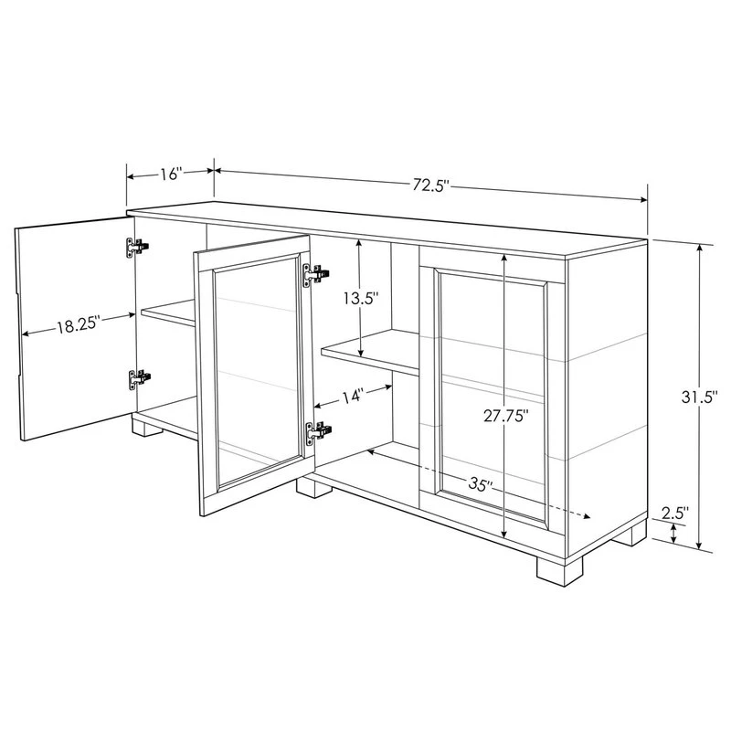 | Size/Weight | W 72.5" / D 16" / H 31.5" / 240 lb. |