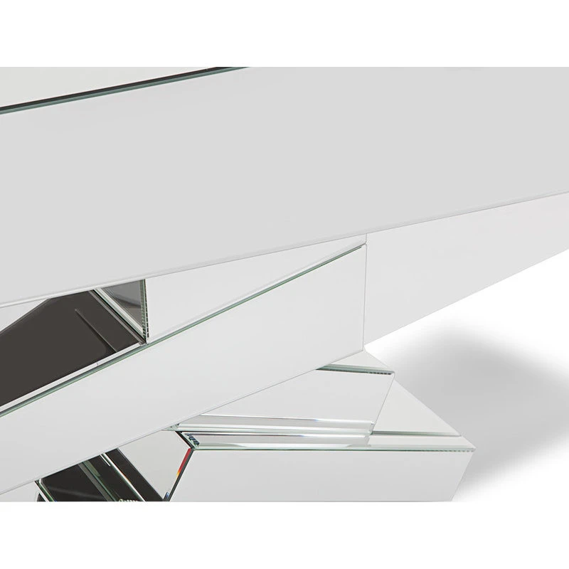Zuri Furniture Modern Naxos Console Table Mirrored Glass Finish Sharp Geometric Design